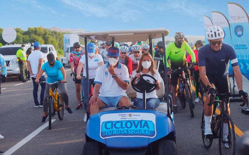 La directora del Tránsito del Atlántico, Susana Cadavid, se pronunció con gran alegría y agrado ante la inauguración de la ciclovía, asegurando que durante la pandemia, cuando estaban cerrados los gimnasios y los escenarios deportivos, el ciclismo se convirtió en una válvula de escape, no solo en forma de ejercitarse, sino para compartir con los amigos y la familia.