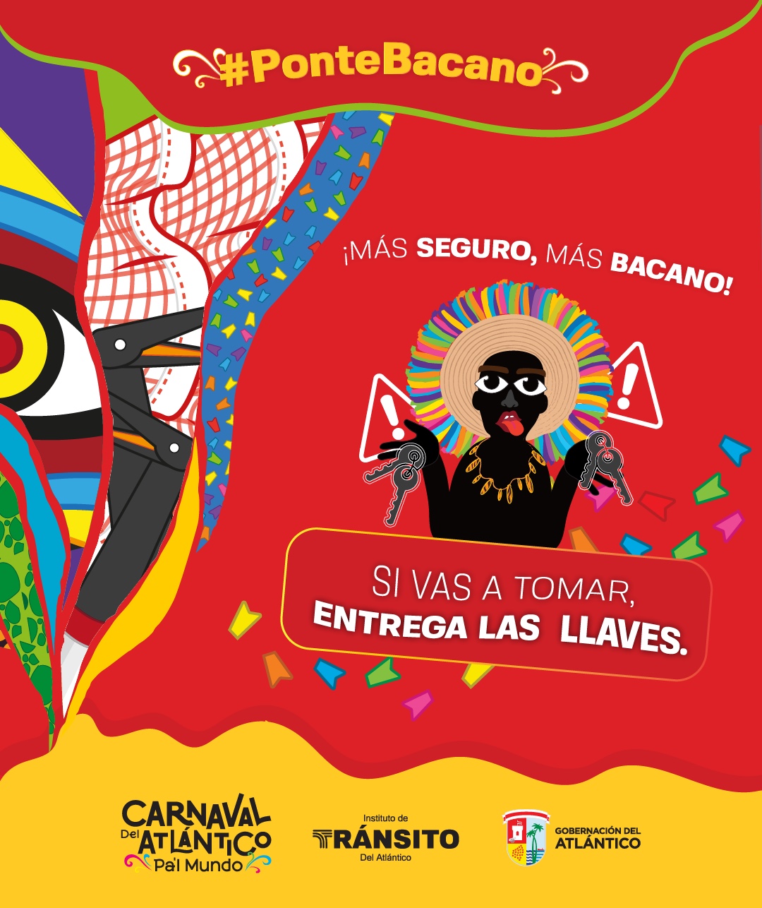 Recuerda #PonteBacano y disfruta del Carnaval del Atlántico respetando las normas de tránsito , en las vías baja la velocidad , si vas a tomar entrega las llaves y #OjoConLaBasura ♻️no la arrojes a las calles guárdala en tu vehículo.