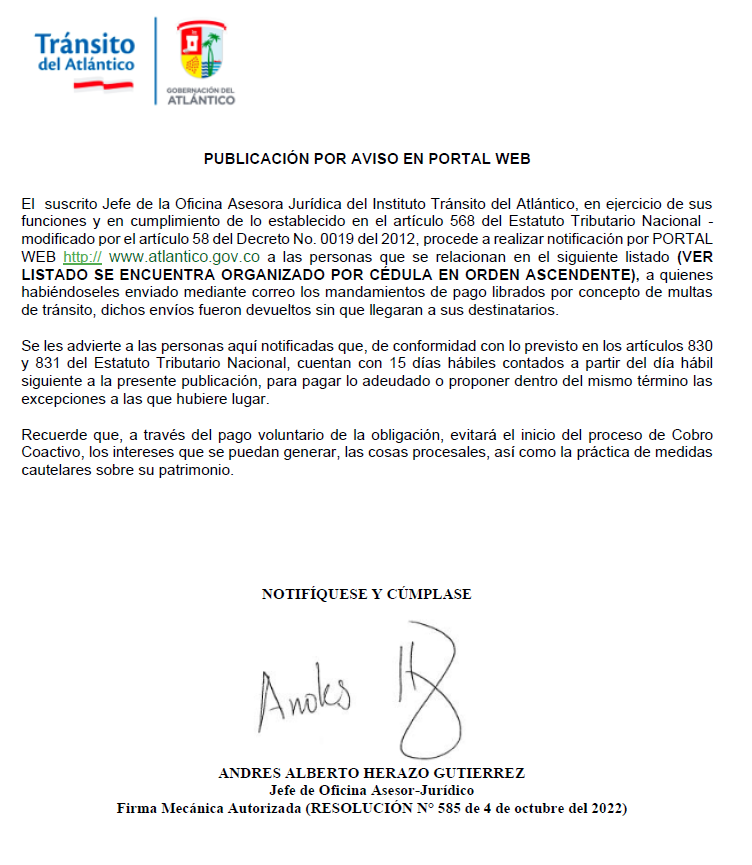 PUBLICACIÓN WEB DEVOLUCION DE CITACIÓN POR CONCEPTO DE COMPARENDOS FÍSICOS. (2020)