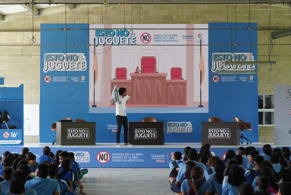 Bajo el lema ‘Esto no es un juguete’, educadores especializados de Tránsito del Atlántico lanzaron la campaña en la Institución Educativa San José, en el municipio de Tubará, con la presencia de estudiantes de sexto a undécimo grado, acompañados por sus padres y docentes.